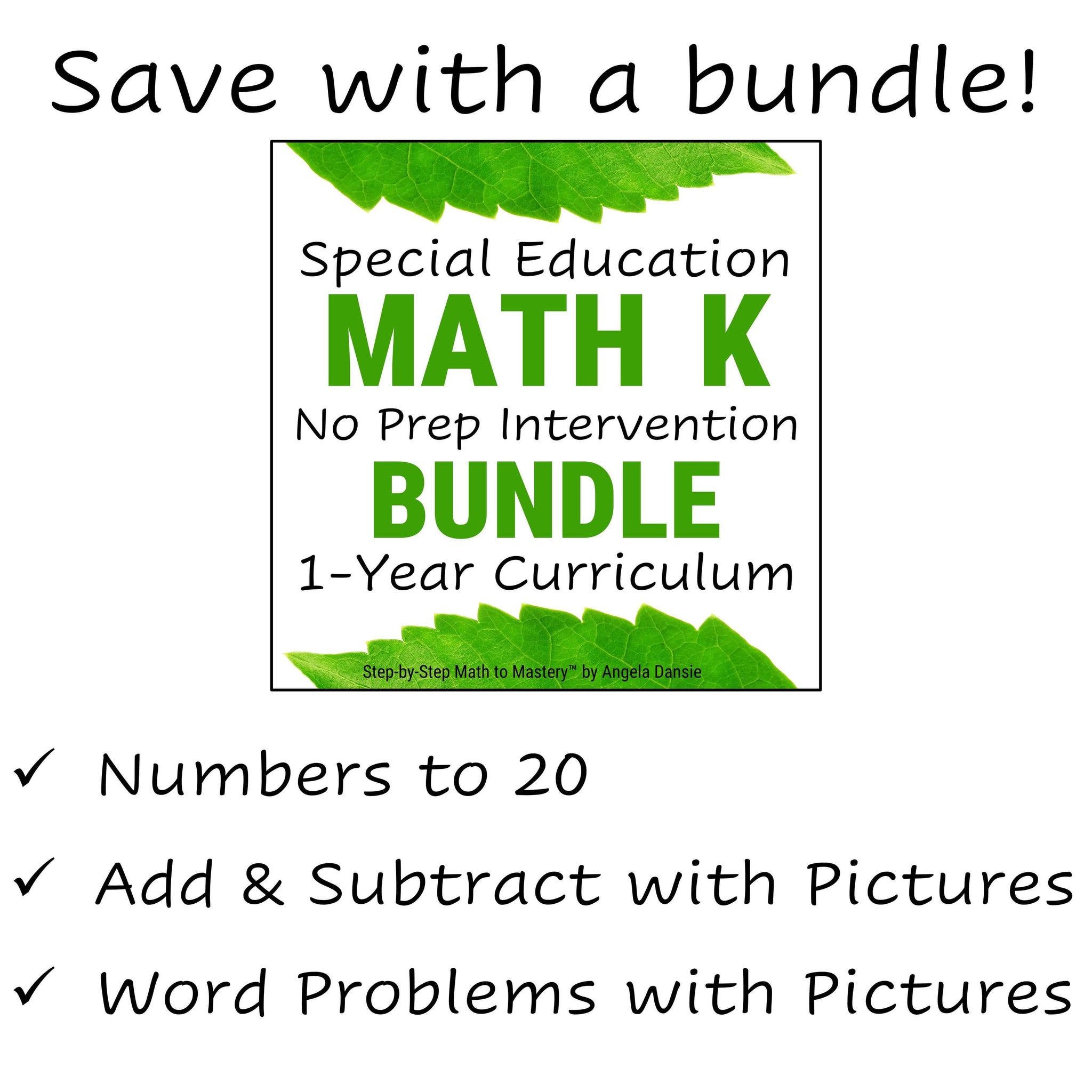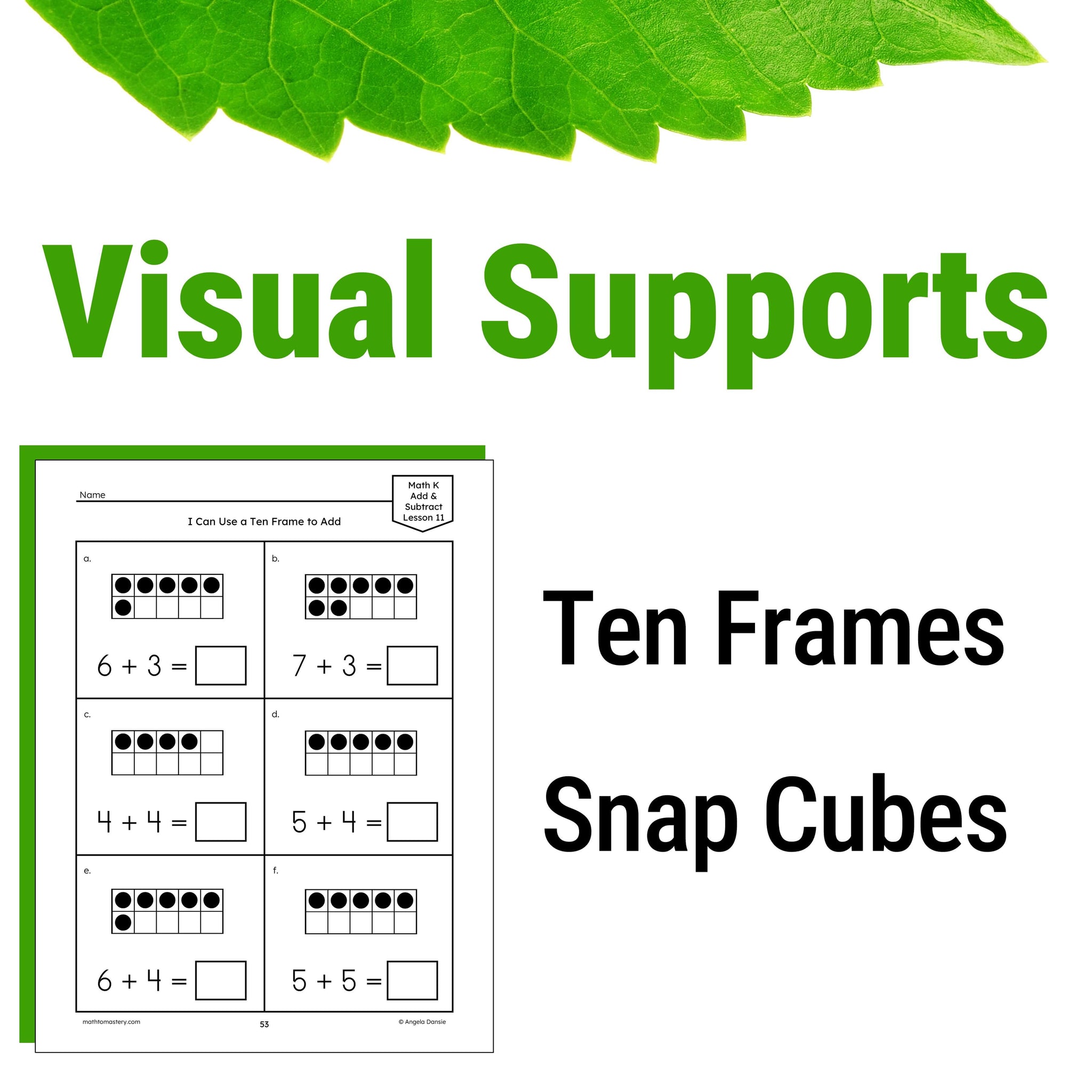 Teach basic addition and subtraction with pictures in 15 simple lessons. Ten frames, snap cubes, and drawn lines are used to illustrate how to add and subtract within 10. Perfect for kindergarten and special education students of any age.