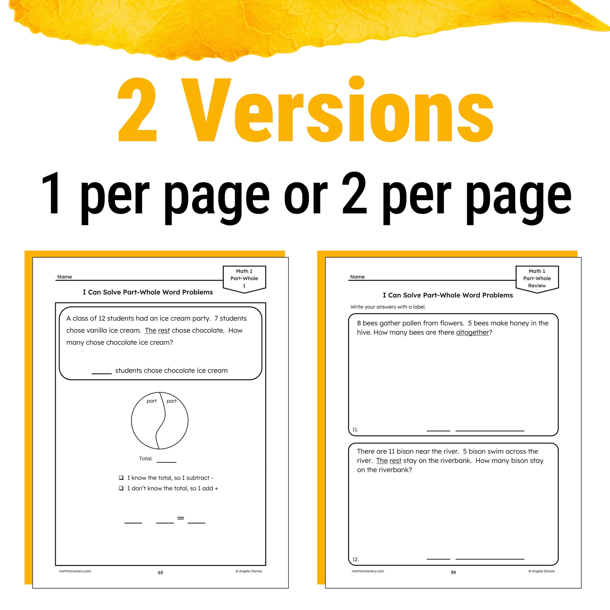 - 50 Part-Whole Word Problems